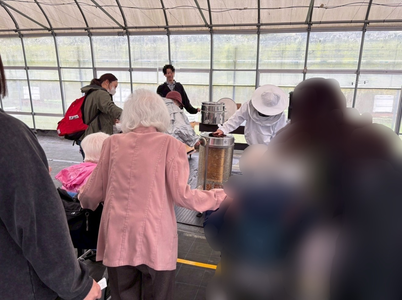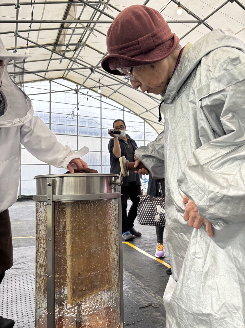 ここでは、はちみつ をどうやって採取しているのか、見学したり実際に体験もしたりしました!