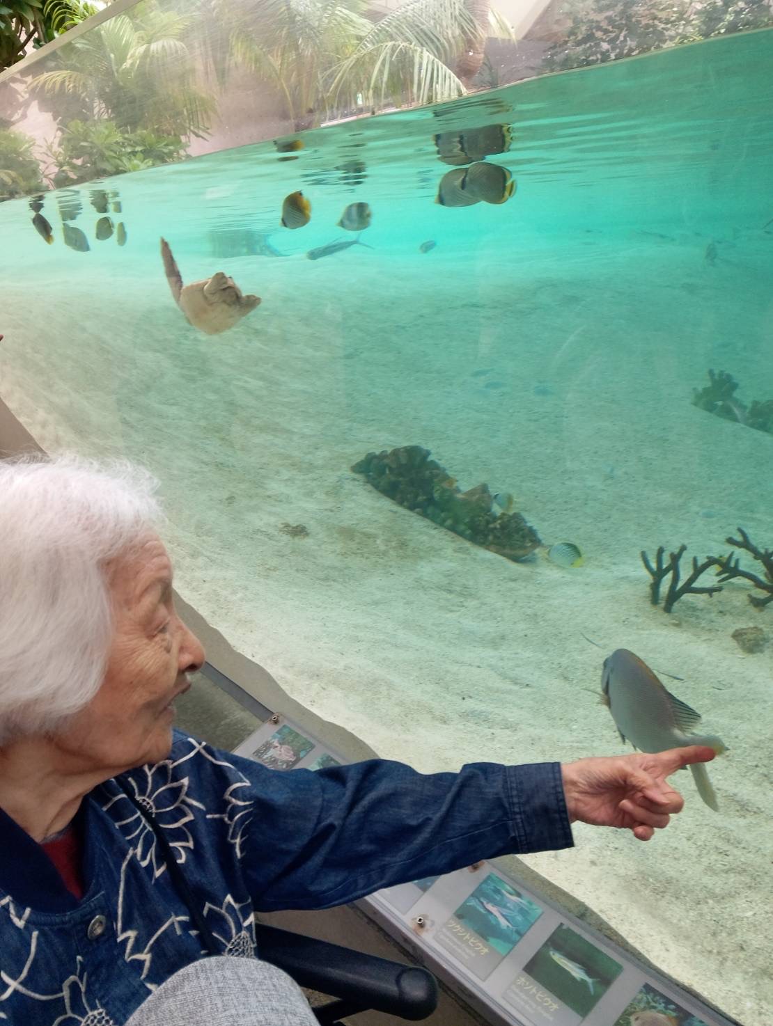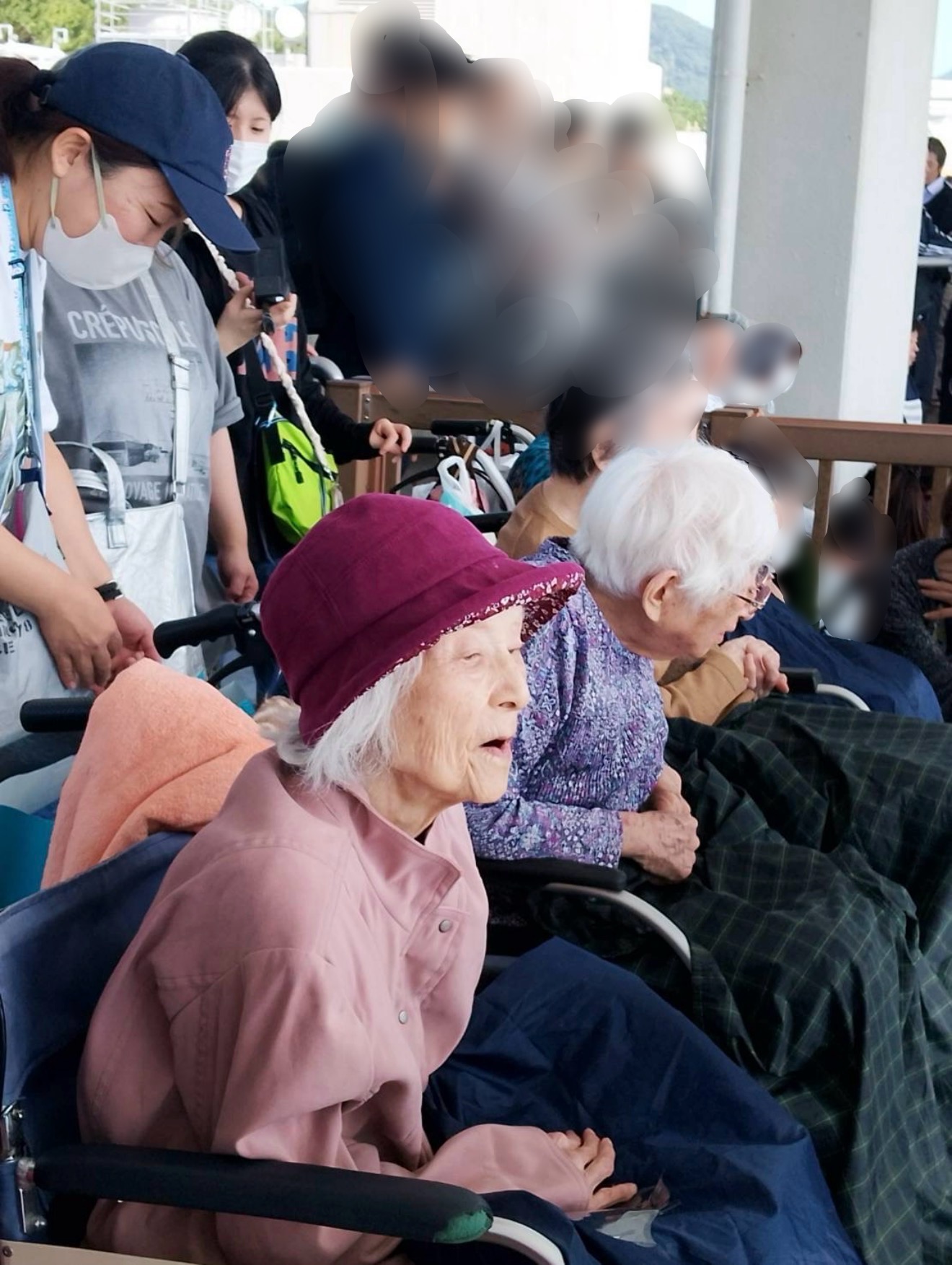 車椅子の優先席よりも前のエリアで鑑賞したご利用者様は最後の最後に水しぶきをもらっていました!(笑)