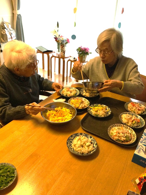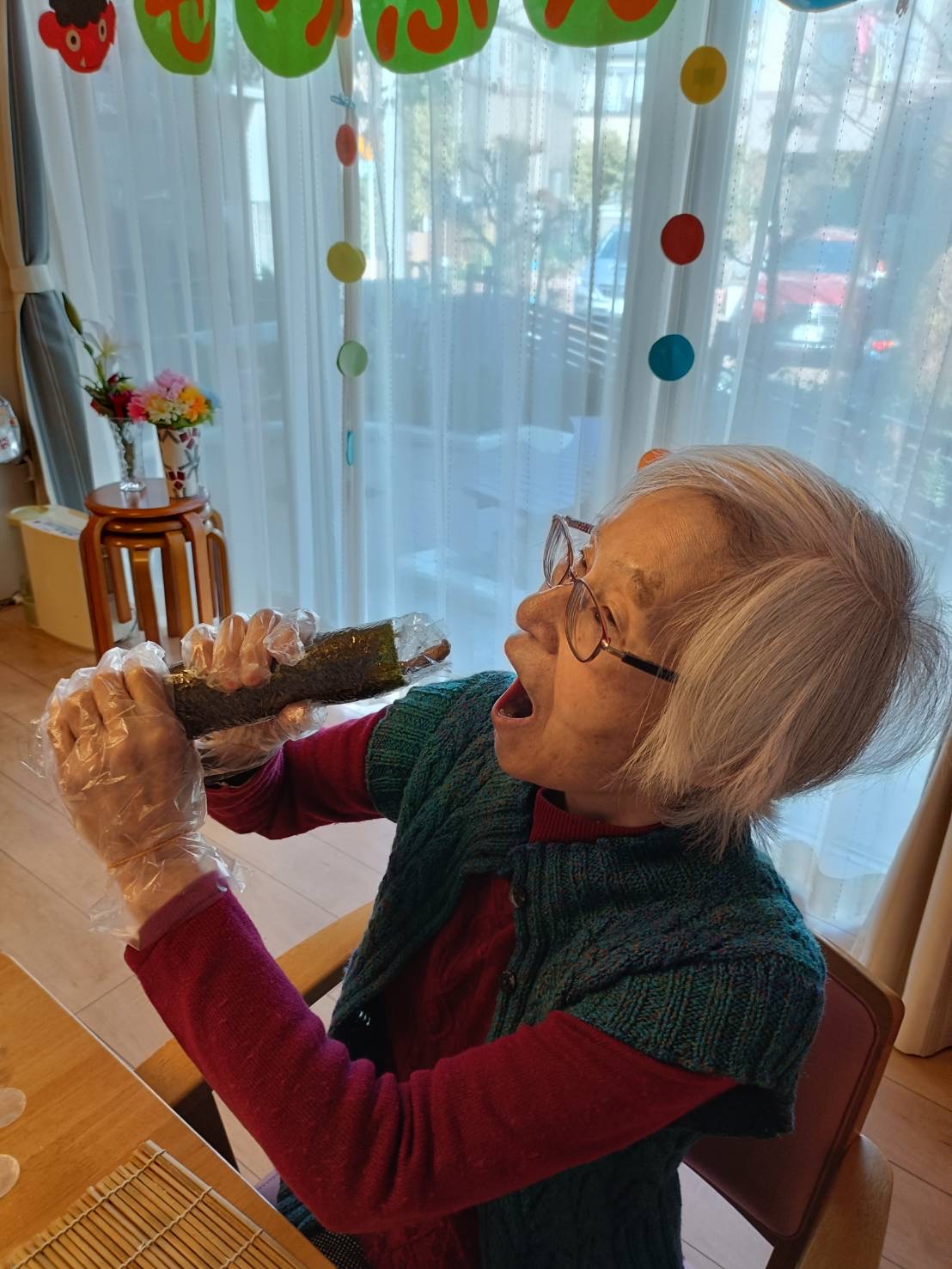 グループホーム大井では毎年皆さんと一緒に太巻きを作り、豆まきをしています。