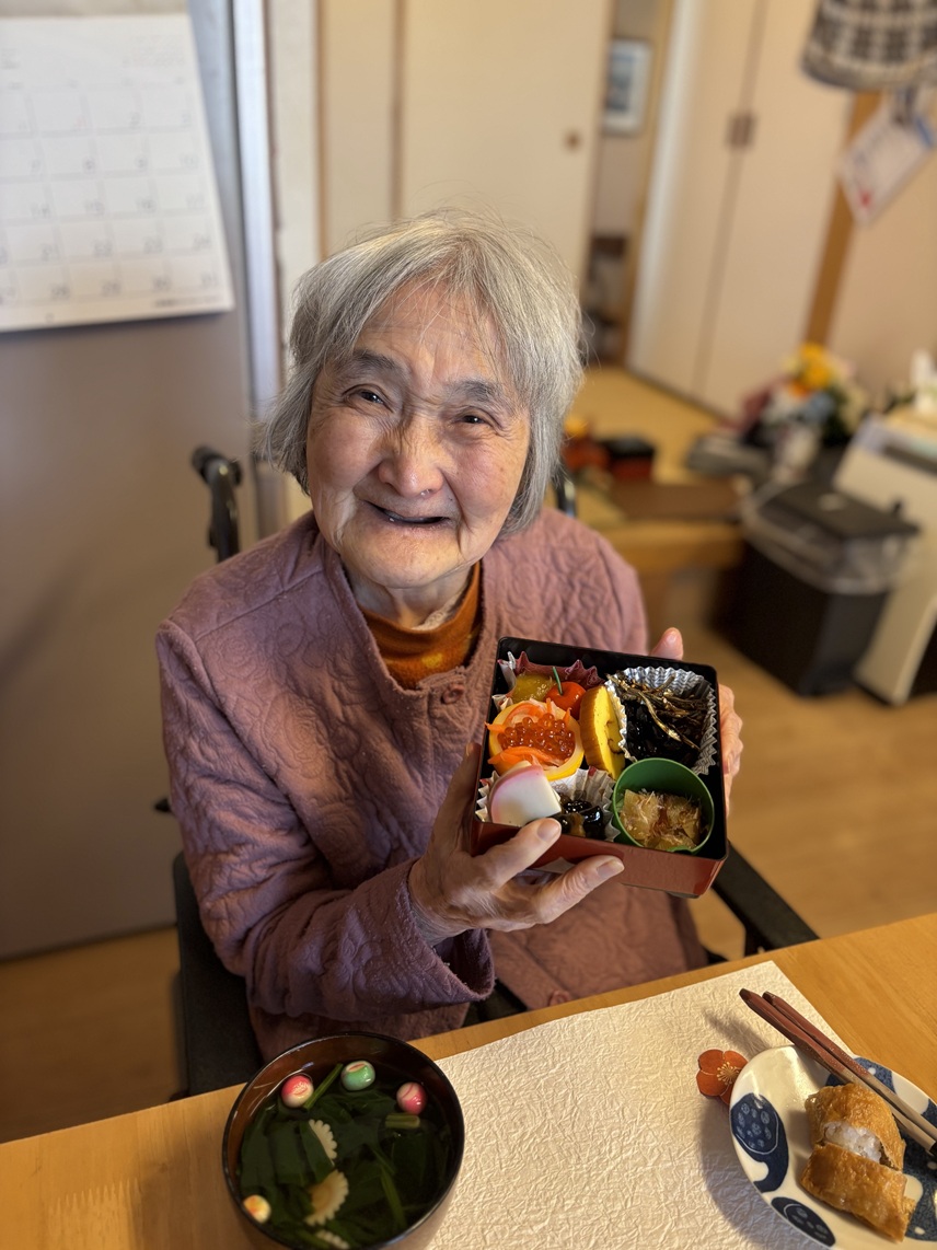 お雑煮と煮物も出来上がり、笑顔でお正月の挨拶をしてから沢山召し上がっておられました!